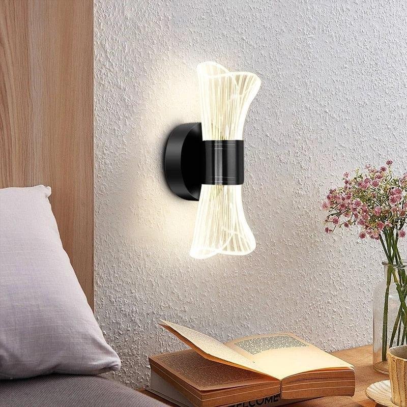 Denna vägglampa i kristallglas kombinerar modern design med en lyxig touch. Den unika formen, med böljande kristallglas och elegant svart fäste, skapar en effektfull ljusspridning som lyfter varje rum. Ljuset bryts genom kristallens struktur och skapar ett mjukt och skimrande sken som ger både atmosfär och funktion. Perfekt som sänglampa i sovrummet eller som dekorativ väggbelysning i vardagsrum och hall. Den kombinerar högkvalitativa material med en modern estetik och passar både moderna och klassiska inredningsstilar.