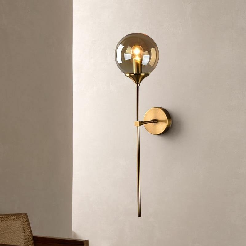 Denna vägglampa i glas och mässing kombinerar tidlös elegans med modern design och skapar ett stilfullt ljusinslag i ditt hem. Den klara glaskupan ger fritt spelrum för ljuskällan och förstärker lampans klassiska karaktär, medan mässingsdetaljerna tillför en varm, lyxig känsla. Perfekt för badrum, hall eller sovrum där du vill kombinera funktion och estetik. Lampans smäckra arm och runda väggfäste i borstad mässing för tankarna till gammaldags elegans, samtidigt som den stilrena formen gör den lätt att integrera i moderna inredningar. En idealisk lampa för dig som uppskattar kvalitet och tidlös design.
