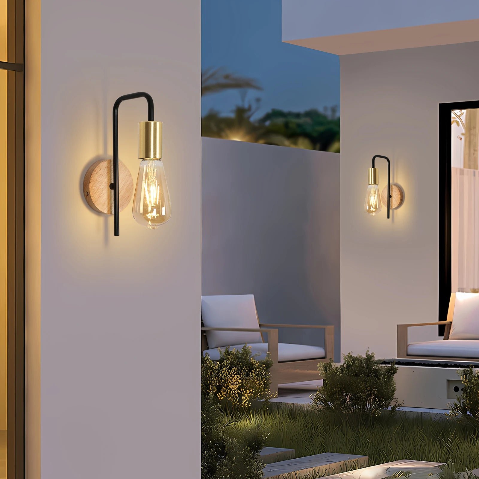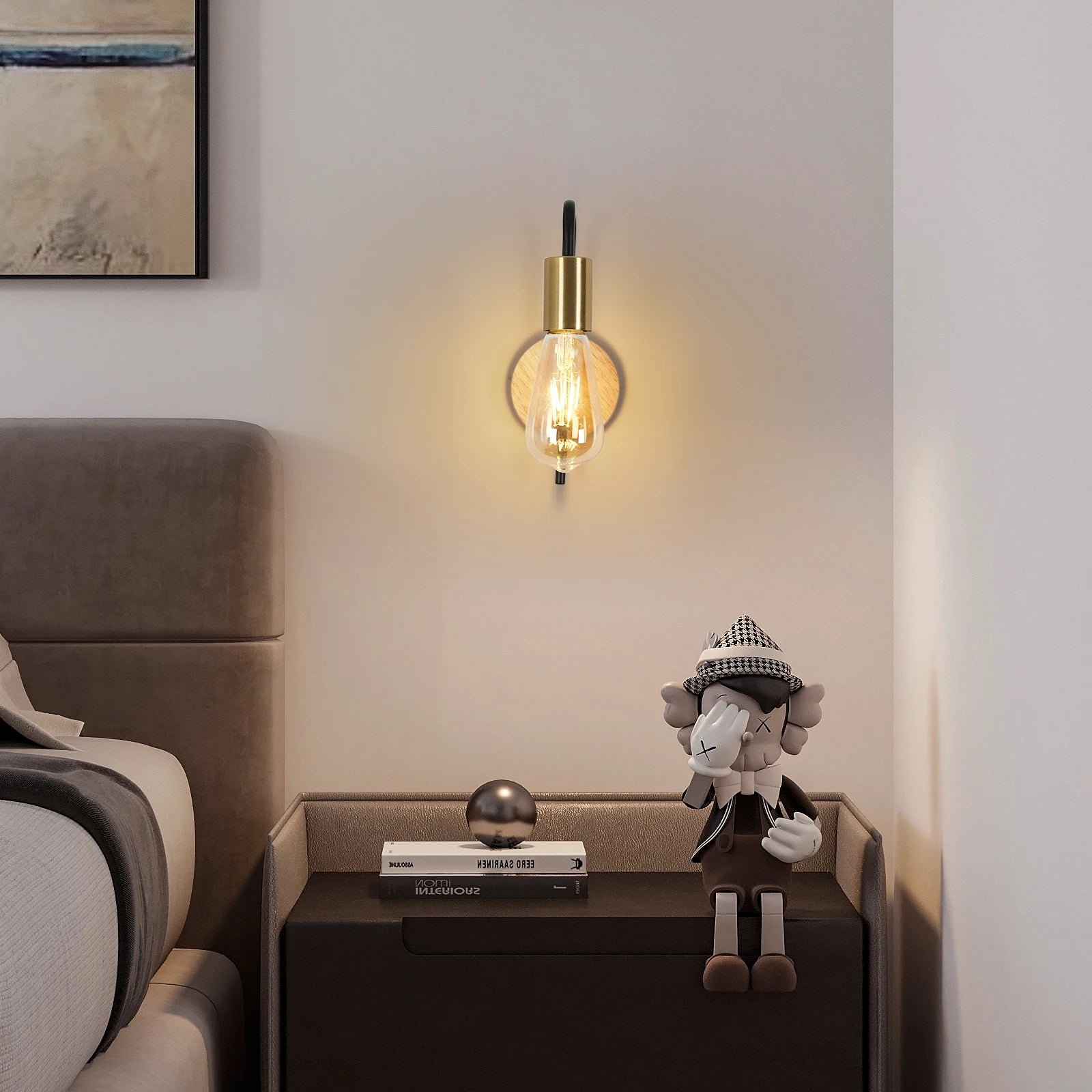 Denna retro vägglampa i glas och mässing kombinerar tidlös elegans med en modern industriell touch. Med sin synliga glödlampa, hållare i borstad mässing och en rund träbas ger den en varm och inbjudande atmosfär. Lampan passar perfekt i sovrum, vardagsrum eller hall där du vill skapa en mjuk belysning och samtidigt ge rummet karaktär. Den minimalistiska designen lyfter fram glödlampans form och gör lampan till en stilfull detalj i både moderna och klassiska hem.