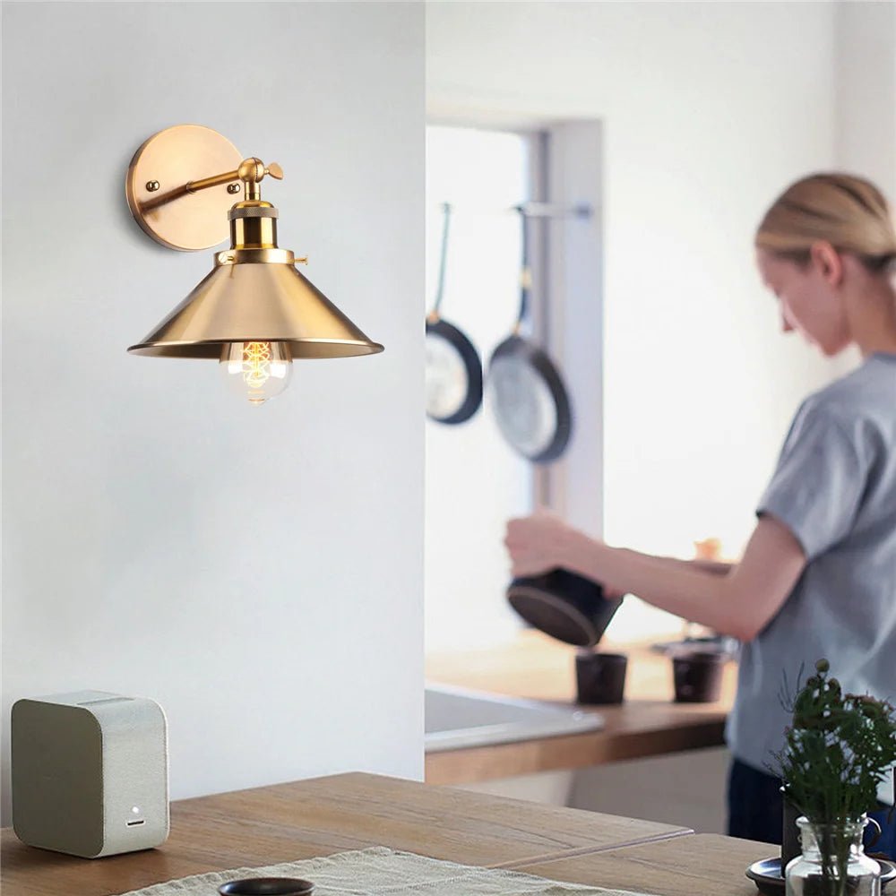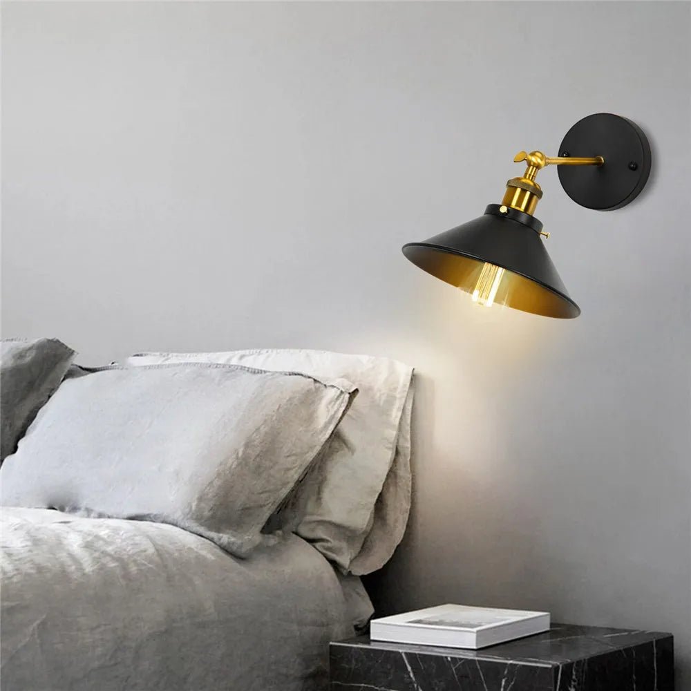 Ge ditt hem en charmig vintagekänsla med denna retro vägglampa. Kombinationen av den svarta metallskärmen och de eleganta mässingsdetaljerna ger en tidlös industriell look som passar perfekt i sovrum, vardagsrum eller hall. Lampans justerbara skärm gör att du kan rikta ljuset precis dit du vill – perfekt för läshörnan eller som sänglampa. Den synliga glödlampan förstärker det rustika uttrycket och passar extra bra med en dekorativ Edison-lampa. En stilfull detalj som kombinerar funktion och estetik på bästa sätt.