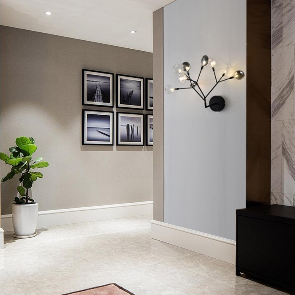 Denna snygga vägglampa för inomhusbruk är ett perfekt exempel på hur belysning kan vara både funktionell och konstnärlig. Med sina flera armar och rökfärgade glaskupor skapar lampan en modern och industriell känsla som passar perfekt i vardagsrum, hall eller som statement-piece i sovrummet. Den svarta metallramen ger en snygg kontrast mot ljuset och glasdetaljerna, vilket ger en unik kombination av rå industri och elegant design. Den fungerar med LED- eller glödlampor, vilket gör den både stilren och energieffektiv. Perfekt för dig som vill ha trendig och iögonfallande väggbelysning.
