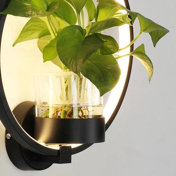 Denna vägglampa förenar ljus och natur på ett stilfullt sätt. Den integrerade LED-slingan skapar en mjuk bakgrundsbelysning som lyfter fram den medföljande växthållaren i centrum. Det cirkulära formatet ger lampan ett modernt uttryck, samtidigt som växterna tillför en naturlig och harmonisk känsla. En perfekt kombination för dig som vill ha belysning som både är praktisk och dekorativ.