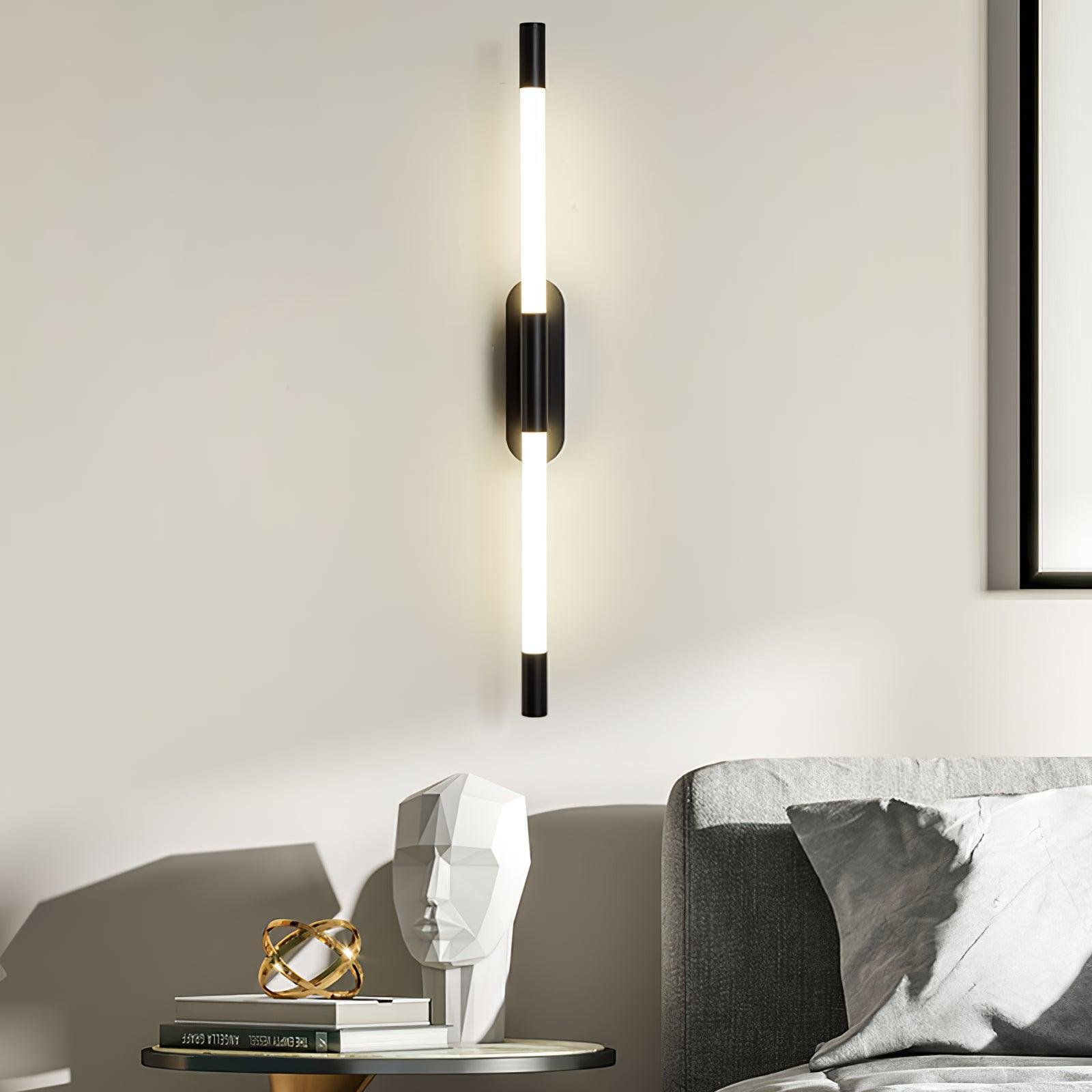 Denna eleganta och moderna vägglampa är perfekt för att skapa en stilren och funktionell belysning i ditt hem. Med sin smala och vertikala design ger den en jämn och behaglig ljusspridning, perfekt för sovrum, vardagsrum eller korridorer. Den integrerade LED-tekniken säkerställer energieffektivitet och lång livslängd, medan den minimalistiska svarta finishen gör lampan till en sofistikerad inredningsdetalj.