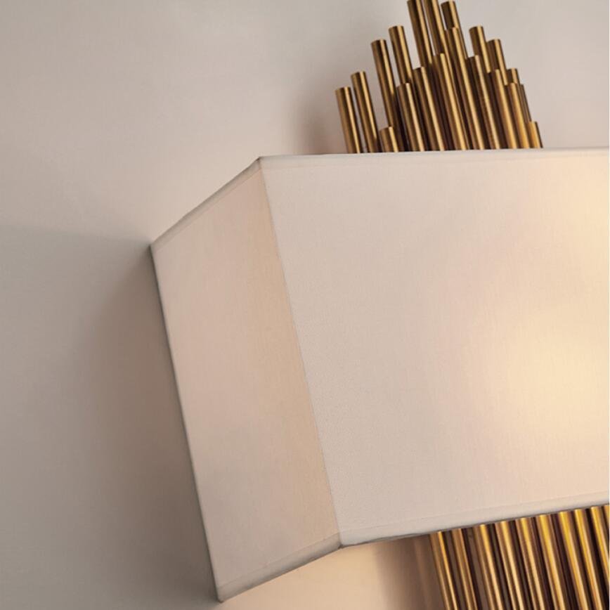 Denna vägglampa i glas och mässing kombinerar modern elegans med en lyxig touch. Den rektangulära lampskärmen i frostat glas sprider ett mjukt, stämningsfullt ljus, medan den dekorativa bakgrunden i mässing med sina smala stavar tillför en sofistikerad karaktär. Perfekt för att skapa hotellkänsla i vardagsrum, sovrum eller hall, där både belysning och design spelar en viktig roll. Vägglampan är enkel att montera och fungerar lika bra som accentbelysning som en del av rummets helhetsintryck. En perfekt kombination av stil och funktion för det moderna hemmet.
