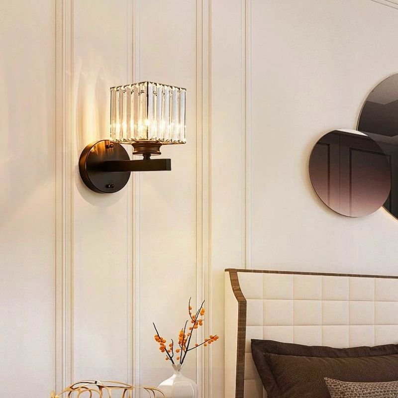Denna vägglampa i glas och metall kombinerar retrostil med modern elegans och passar perfekt i sovrum, vardagsrum eller hall. Lampskärmen i klarglas med vertikala linjer sprider ljuset på ett vackert sätt och skapar en lyxig känsla med en vintage-touch. Den svarta metallbasen ger lampan en modern kontrast och förstärker dess tidlösa karaktär. Perfekt för dig som vill ge ditt hem en elegant men samtidigt nostalgisk känsla. Kombinera med en filamentlampa för att framhäva den retroinspirerade designen och skapa en varm, inbjudande atmosfär.