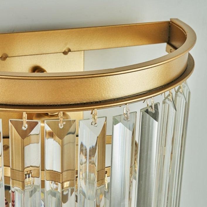 Denna eleganta vägglampa i glas kombinerar modern lyx med klassisk design och blir ett vackert blickfång i vilket rum som helst. De hängande glasprismorna fångar och reflekterar ljuset, vilket skapar en varm och glittrande atmosfär. Perfekt för sovrum, vardagsrum eller hall där du vill tillföra både funktion och dekorativ elegans. Lampans metallram i mässing ger en sofistikerad kontrast mot det klara glaset, vilket förstärker den exklusiva känslan. Passar både modern och klassisk inredning och ger rummet ett lyxigt lyft.