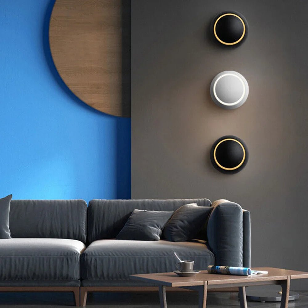 Ge ditt hem en elegant och modern touch med denna stilrena vägglampa i mässing. Den runda, tvådelade designen kombinerar mattsvart yta med en subtil mässingskant som skapar ett behagligt och indirekt ljus. Perfekt som stämningsbelysning i vardagsrum, sovrum eller hall där du vill förena funktion med modern design. Lampans högkvalitativa material och finish gör den till ett tidlöst val för dig som uppskattar minimalistisk inredning med lyxiga detaljer. Enkel att montera och anpassa för olika rum och stilar.
