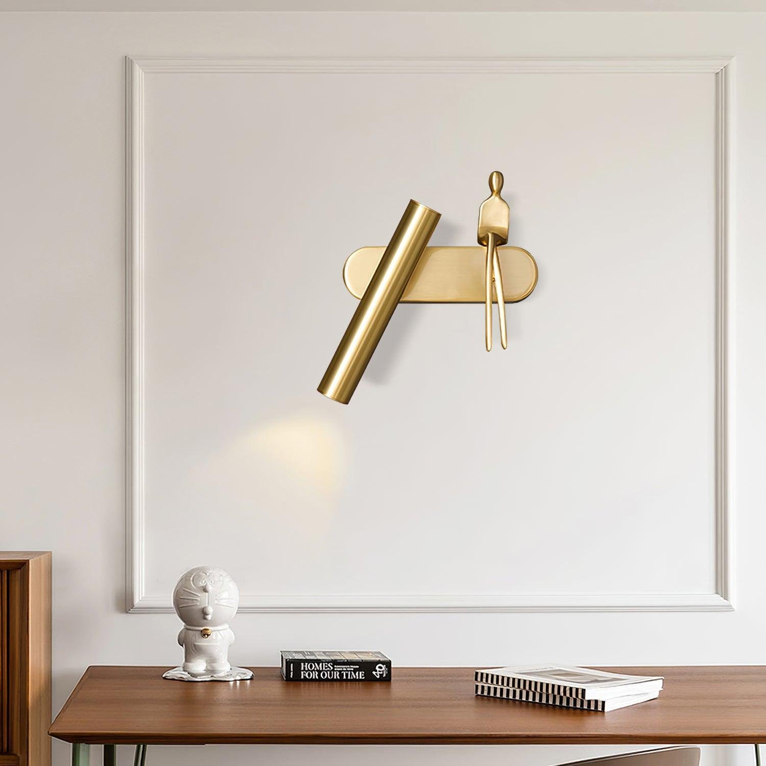 Denna sofistikerade vägglampa i guld är en perfekt kombination av modern design och funktionalitet. Med sin unika form och integrerade LED-belysning ger den ett varmt och behagligt ljus, perfekt för inomhusbruk i vardagsrum, sovrum eller arbetsrum. Dess minimalistiska, men ändå konstnärliga design med en stilren figur ger en exklusiv touch till din inredning. Enkel att montera och energieffektiv, denna lampa är både en dekorativ och praktisk ljuskälla.