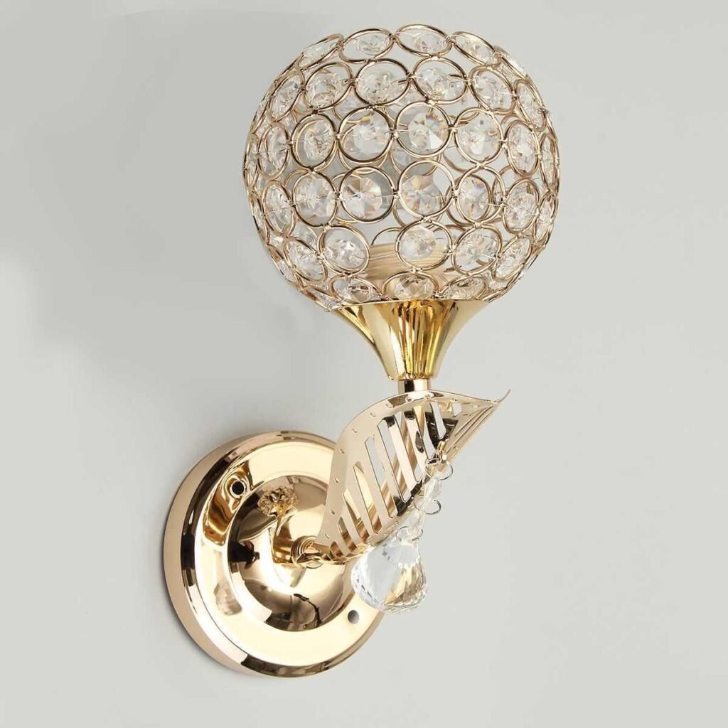 Skapa en lyxig och nostalgisk atmosfär med denna vägglampa med retrodesign och rund glaskupa. Den cirkulära glaskupan, prydd med glittrande kristallinspirerade detaljer, sprider ett varmt och stämningsfullt ljus som förvandlar rummet. Mässingsfoten och den svängda armen med elegant kristallhänge förstärker den klassiska känslan och gör lampan perfekt för sovrum, vardagsrum eller hall. Kombinationen av glaskristaller och glänsande metall ger en lyxig touch som passar både modern vintage och klassisk inredning. Perfekt för dig som vill addera en elegant detalj med funktionell belysning i hemmet.