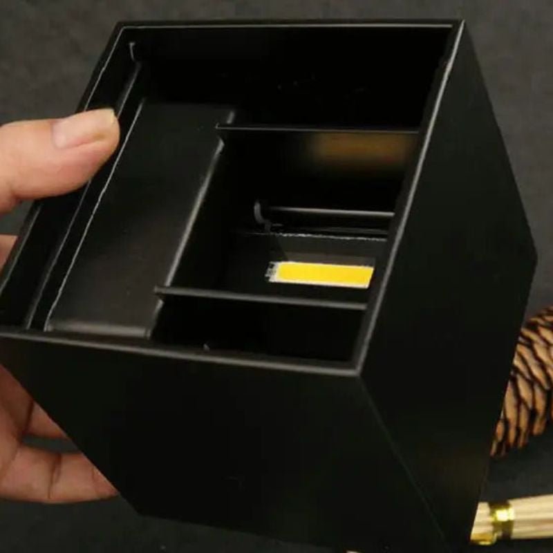Ge ditt badrum en modern touch med denna eleganta svarta vägglampa. Med sin stilrena kubform och mattsvarta finish blir den en snygg kontrast till ljusa badrumsväggar eller kakel. Lampan lyser både uppåt och nedåt och skapar ett effektfullt ljusspel som ger rummet en inbjudande atmosfär. Perfekt för badrum där du vill kombinera funktion och design. Tillverkad i slitstarka material som tål fukt, passar den utmärkt i både stora och små badrum. En tidlös och funktionell lösning för modern badrumsbelysning.