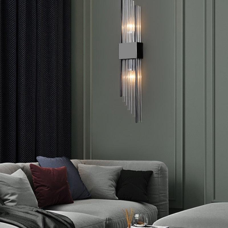 Denna vita vägglampa med frostat glas är en elegant kombination av modern design och mjuk ljusspridning. De frostade glasstavarna ger ett subtilt och behagligt sken som skapar en lugn och inbjudande atmosfär i rummet. Den stilrena vita färgen och de vertikala glasdetaljerna gör lampan till en perfekt inredningsdetalj i både sovrum, vardagsrum och hall. Lampan sprider ljuset jämnt och dämpar bländning, vilket ger ett harmoniskt ljusflöde. Med sin tidlösa design och exklusiva materialval blir denna vägglampa en stilfull del av både moderna och klassiska interiörer.
